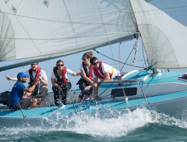 Une vraie régate accessible aux non-initiés : cohésion, adrénaline, esprit d’équipe.